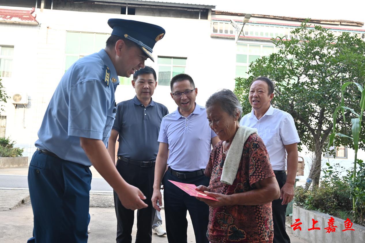 云上嘉鱼报道(全媒体记者陈铮)在纪念中国人民抗日战争胜利80周年之际,9月3日下午,县委常委、县人武部政委张伟一行来到簰洲湾镇中堡村走访慰问抗战烈士子女,向抗战老战士、抗战烈士亲属致以崇高敬意。县退役军人事务局、簰洲湾镇等相关负责人参加活动。
