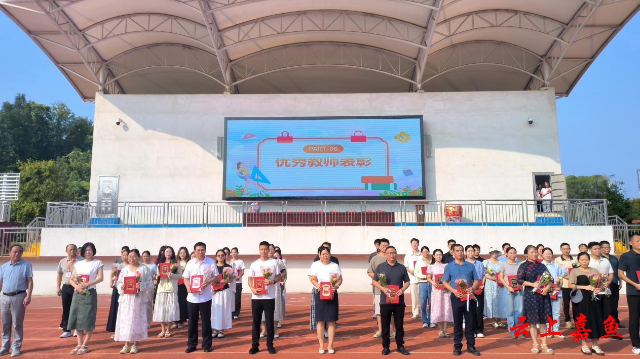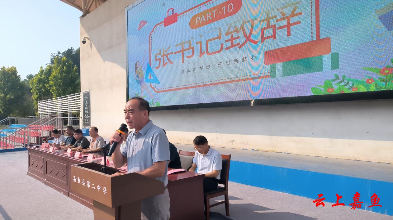云上嘉鱼报道(全媒体记者黄士翔)9月8日,嘉鱼二中举行“承载新梦想 开启新征程”2025年秋季开学典礼暨表彰大会,全体师生齐聚操场,共同开启新学期的美好篇章。