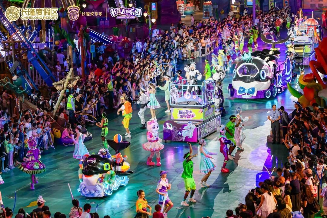 如果你是资深“乐园控”,就可以直奔“全球狂欢”主题花车,能看到珠海长隆、武汉极地海洋公园等献上的酷炫演出。此外,在“动漫萌宠”花车前,还有蒜鸟家族、大熊猫人偶疯狂比心!