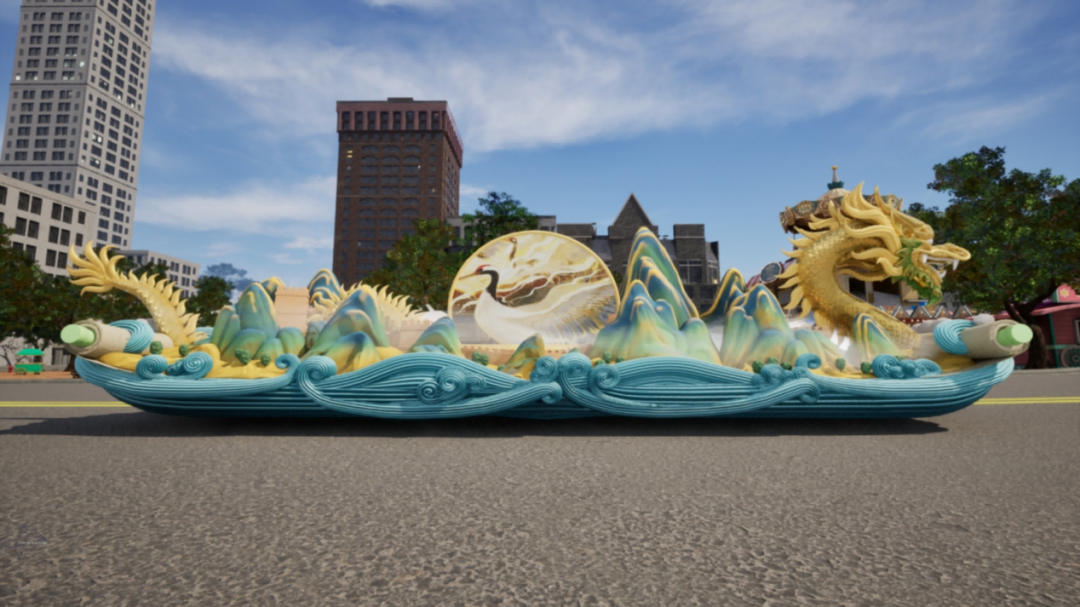 在设计方面,“河山锦绣”以东方龙为主体,承载立体版的“千里江山图”;“楚风汉韵”以楚王兵马仪仗为主体,承载楚人图腾“凤舞九天”与楚地名胜黄鹤楼;非遗国潮包含京剧、昆曲、飞天等经典景观;各品牌花车则全面展示了湖北本土的科技、名胜、生态、特产等元素……