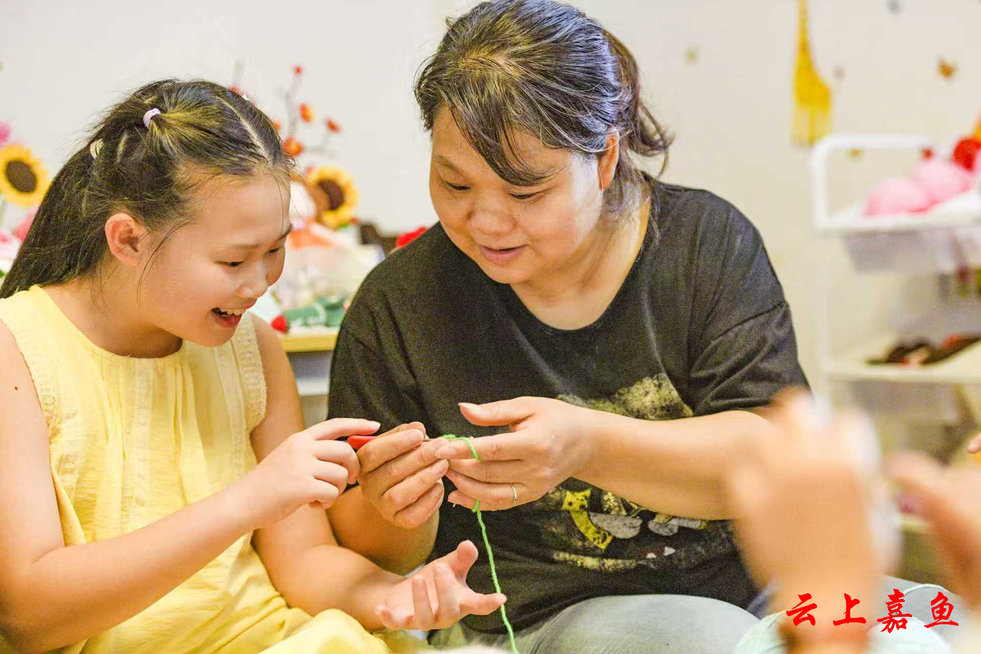 云上嘉鱼报道(全媒体记者雷平)9月13日,在鱼岳镇江樱花园的居民朱利华家中,她正在为前来学习的妇女和儿童传授中国传统钩织技艺。