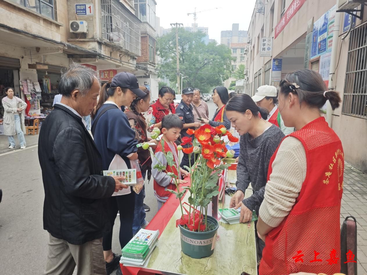 云上嘉鱼报道(全媒体记者皮道琦 通讯员游梦琴)9月22日,鱼岳镇茶庵社区新时代文明实践站、茶庵社区团委携手鱼岳镇社区戒毒康复中心、方庄派出所,在嘉鱼县第一小学茶庵校区共同开展“禁毒知识进校园,多方联动护成长”主题宣传活动。
