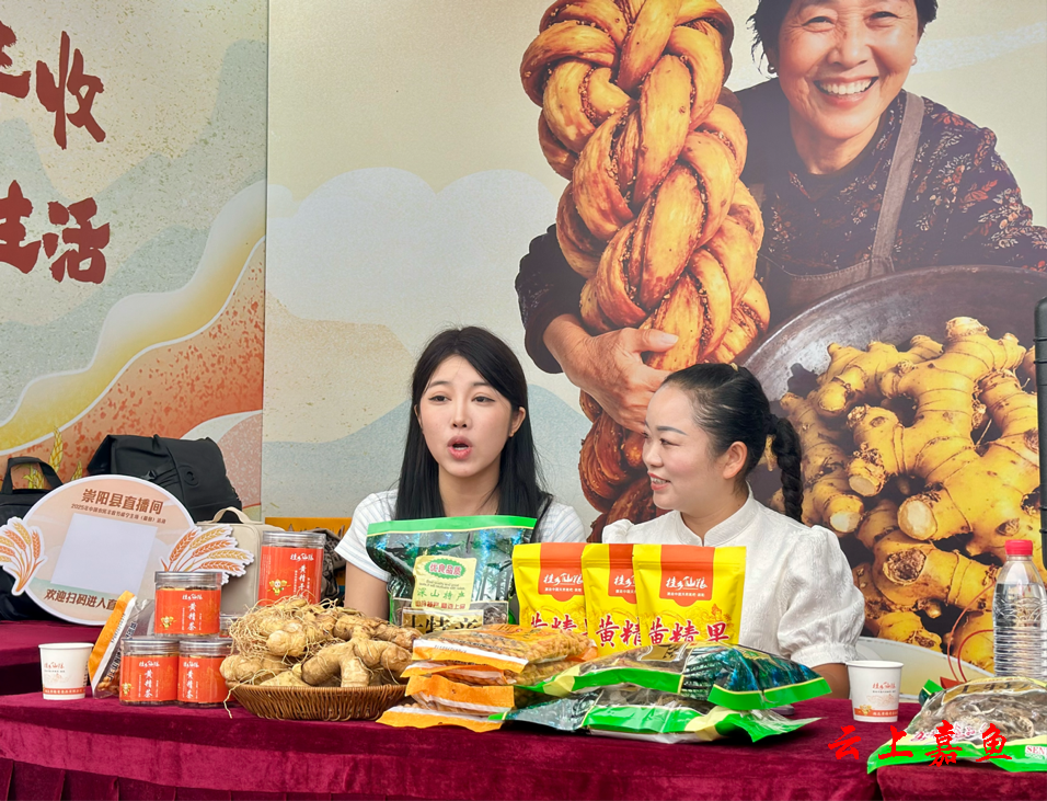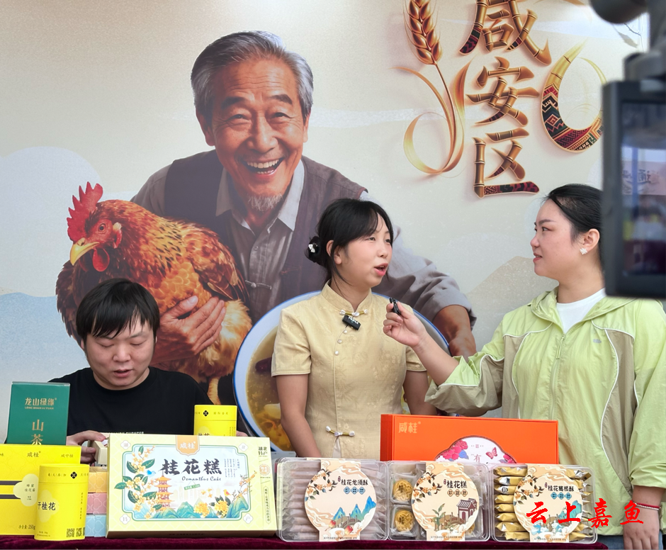 “大家看,这是我们嘉鱼的泡藕带,清脆爽口、开胃健脾。”“这是赤壁的青砖茶,喝的不仅是茶,更是文化!”“来崇阳,不仅能漫步青山绿水间,还能带走我们的黄精果、黄精干片、黄精茶。”……直播推介区内气氛火热、“干货”满满。活力四射的助农主播坐镇主会场,以宏阔视角带领线上观众“云游”整个丰收盛典。随后,镜头依次与咸安区、嘉鱼县、赤壁市、通城县、崇阳县、通山县6个县(市、区)的分直播间实时连线。各分直播间犹如一扇扇精心打造的“数字橱窗”,主播们热情洋溢地推介着本地的特色农产品、风土人情和旅游景点。