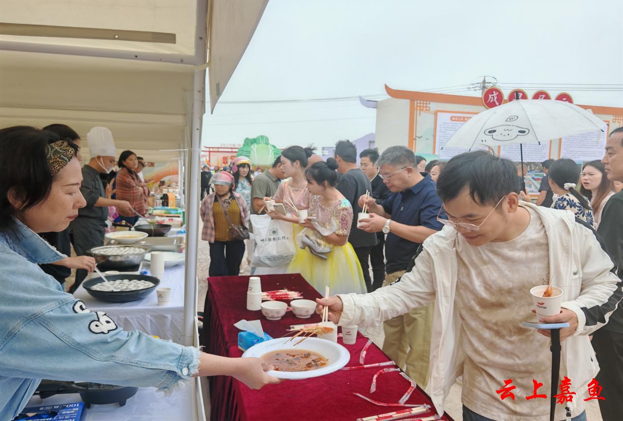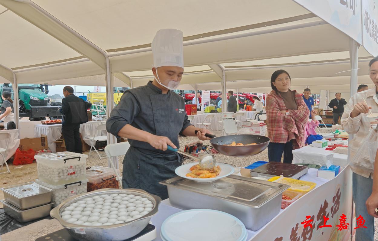 “鱼圆Q弹,罗氏沼虾肉质紧实鲜美,好吃!”“这个有没有卖的?我想带点回去给家人尝尝!”“刚好没吃早餐,吃几个鱼圆几只沼虾感觉好满足……”美味的鱼圆和罗氏沼虾吸引了越来越多的游客。