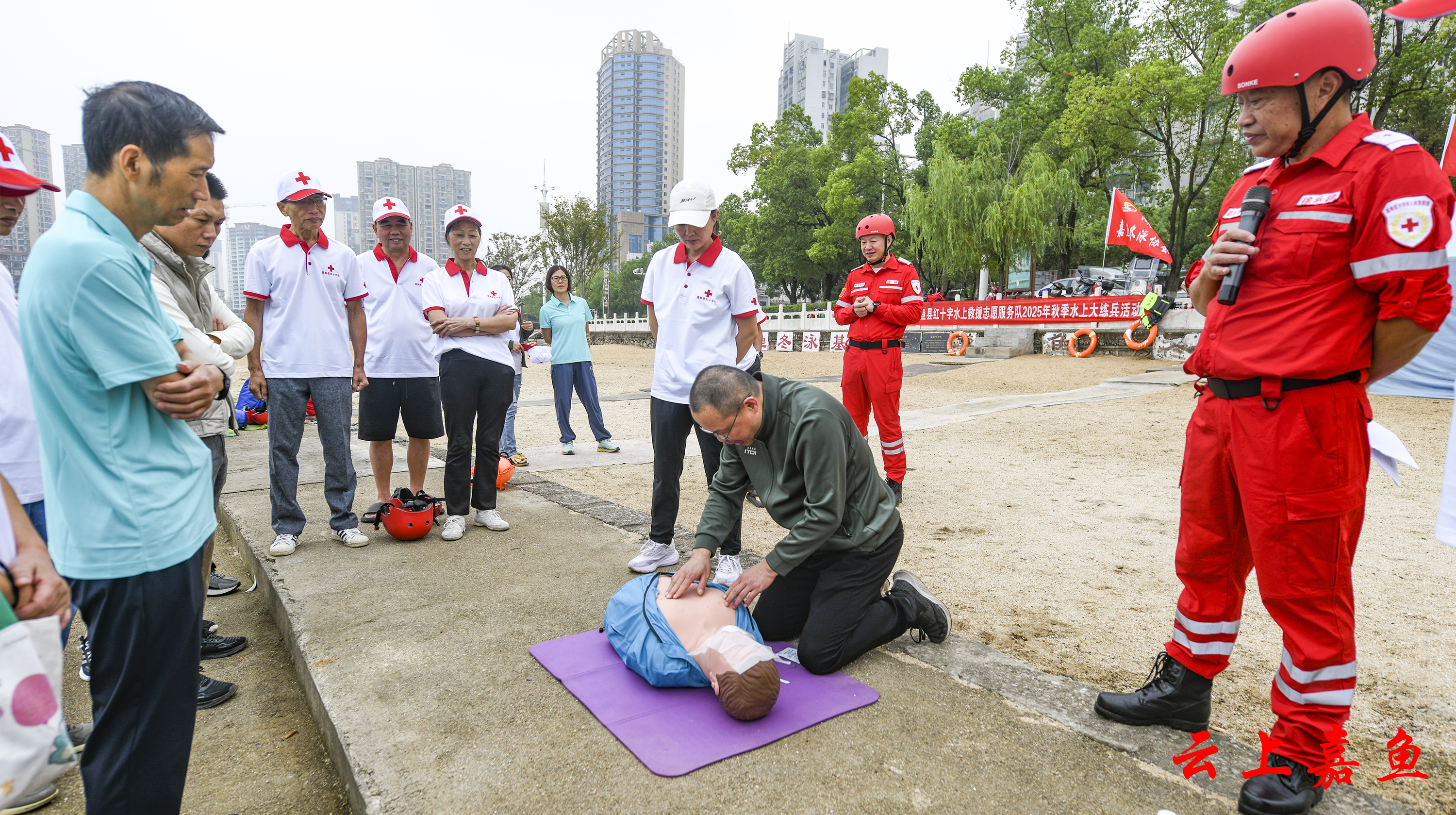 云上嘉鱼报道(全媒体记者雷平 通讯员徐永建)9月27日,嘉鱼县红十字水上救援志愿服务队在三湖连江景区开展2025年秋季水上救援大练兵活动。