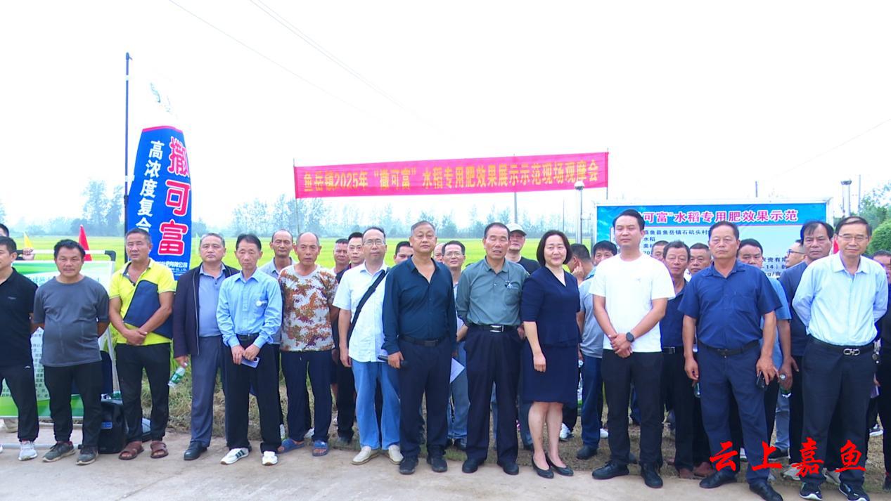 云上嘉鱼报道(全媒体记者黄士翔)9月25日,嘉鱼县在石矶头村九组水稻田埂间召开2025年“撒可富”水稻专用肥效果展示示范现场观摩会。县农业农村局相关负责人、县域内农业经营主体、种粮大户、肥料经销商及村民代表等50余人齐聚田间,通过“理论讲解+实地观摩+产量实测”的方式,直观感受高效肥料对水稻种植的提质增效作用。