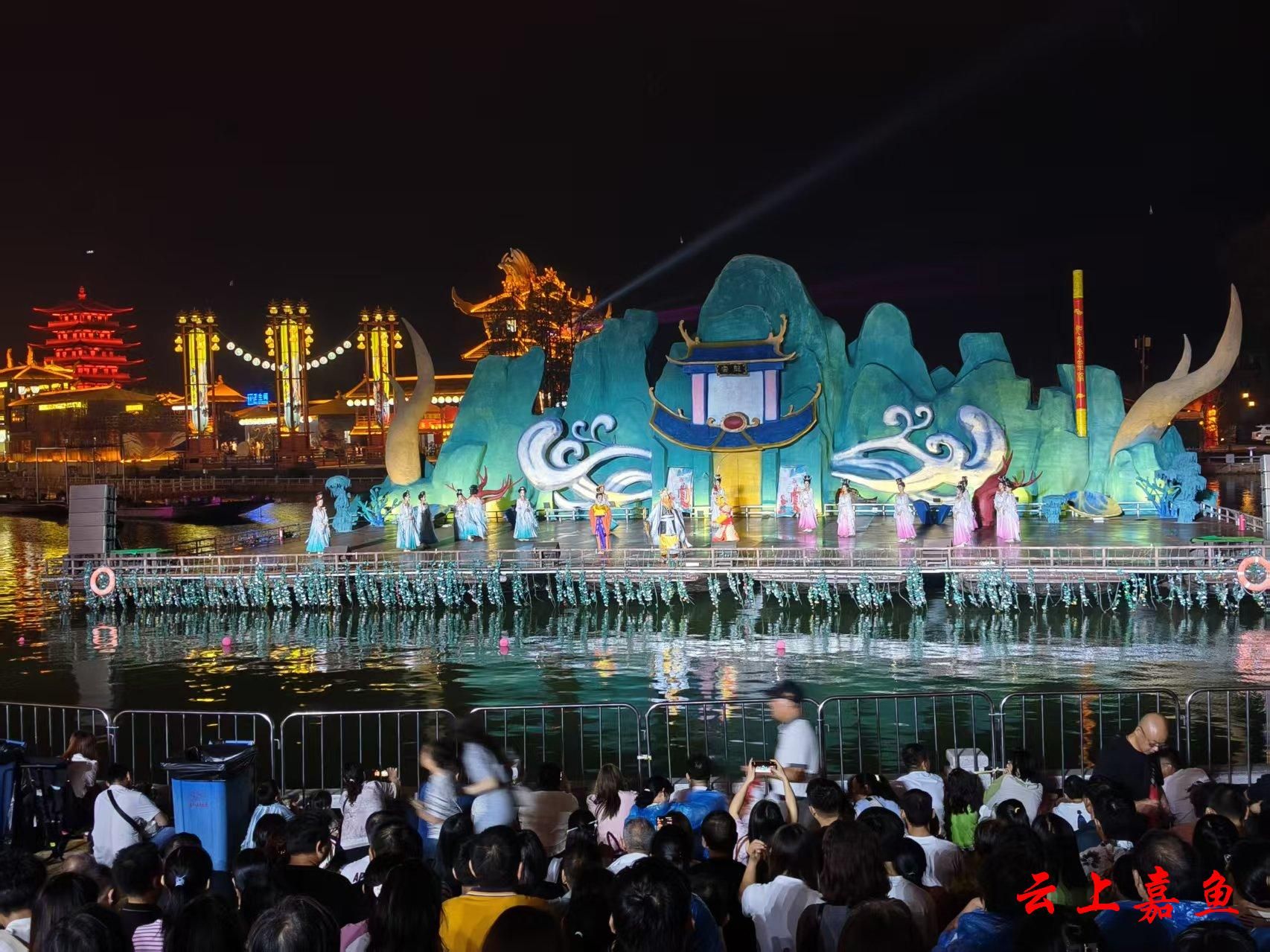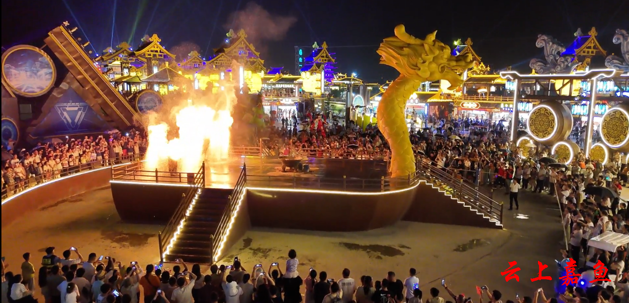 云上嘉鱼报道(全媒体记者胡知微)10月2日,国庆中秋假期第二天,嘉鱼县恋江湖·船歌岛景区灯火璀璨,游人如织,景区在传统玩法蟠桃盛会、女儿国招亲、美人鱼、孙悟空龙宫借宝、非遗打铁花基础上,再次上新非遗火壶、水上火壶飞人表演等游乐项目,吸引众多游客沉浸体验,第二天狂揽游客1.5万人。