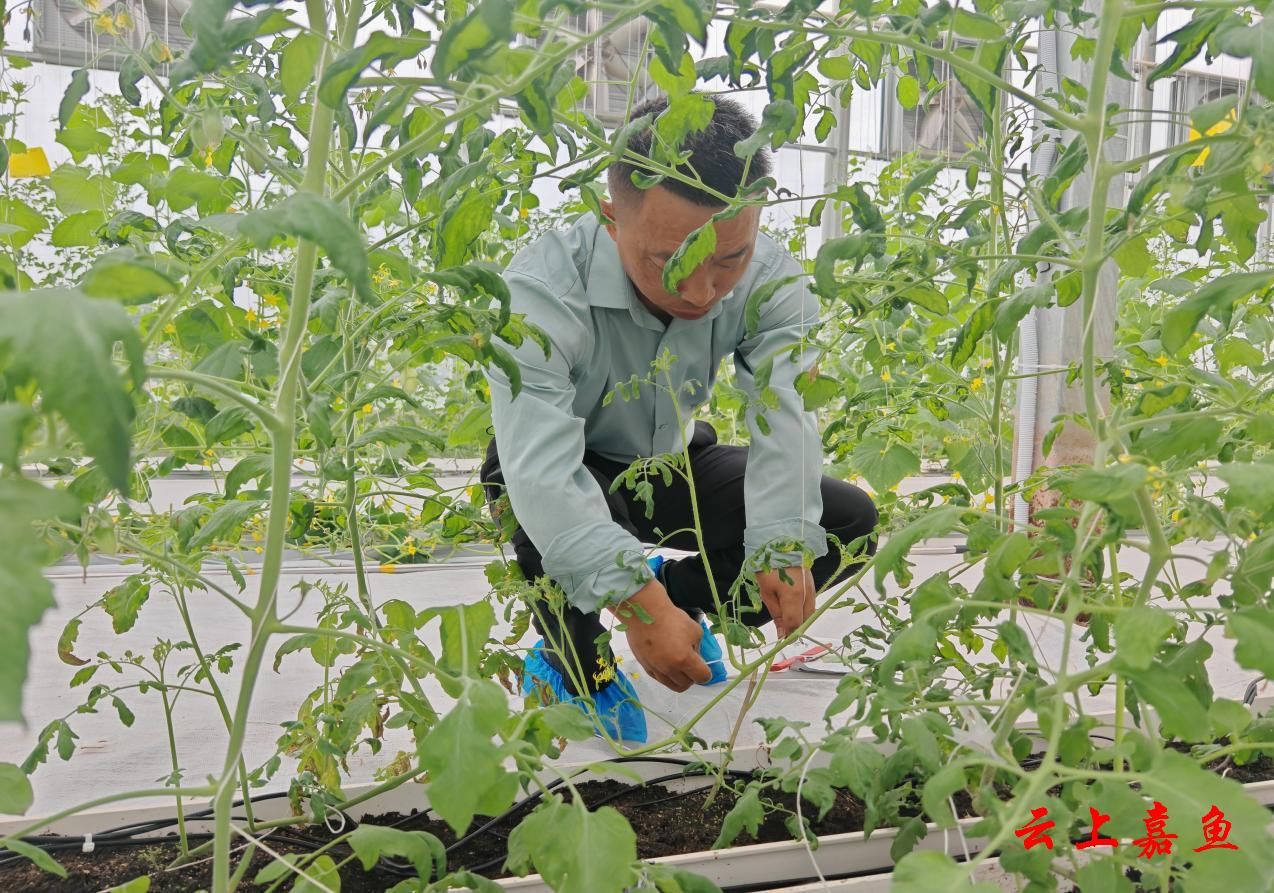 云上嘉鱼报道(全媒体记者邓丹)“形状不好的果子都要掐掉,保证好果子的营养!”10月13日一大早,潘家湾镇金润农业蔬菜科技馆里,省农科院病虫害防治专家焦忠久正忙着指挥工作人员给黄瓜落蔓、疏果,他自己则拿着笔记本猫着腰在一排排的番茄苗里面仔细查看着。