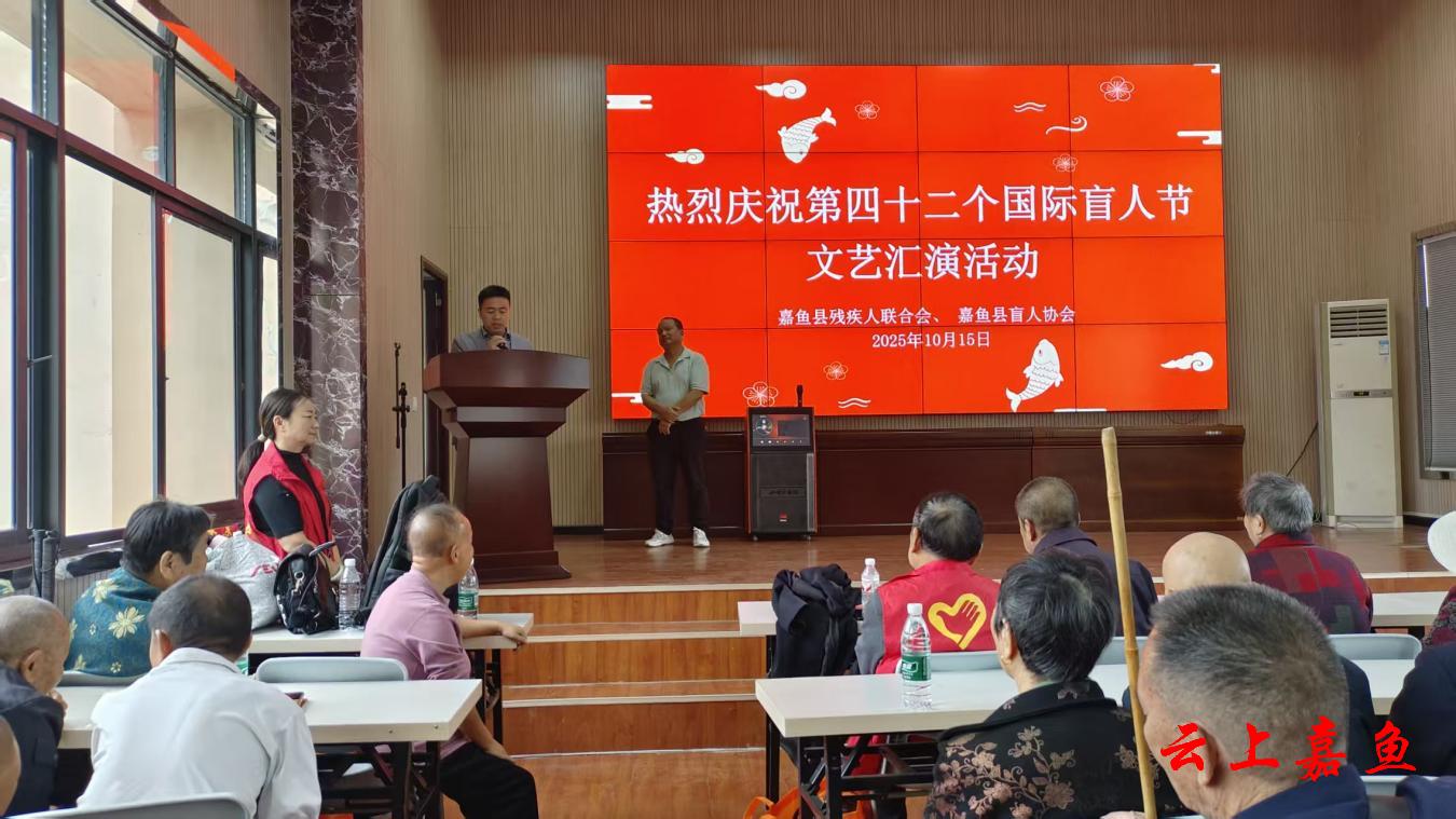 云上嘉鱼报道(全媒体记者郭辉 通讯员高佳仪)为庆祝第42个国际盲人节,10月15日,嘉鱼县残联联合县盲协开展文艺汇演活动,全县百余名视障残疾人代表参加活动。