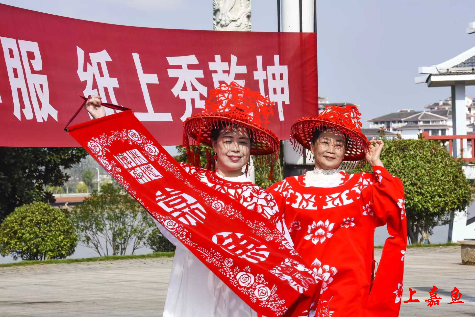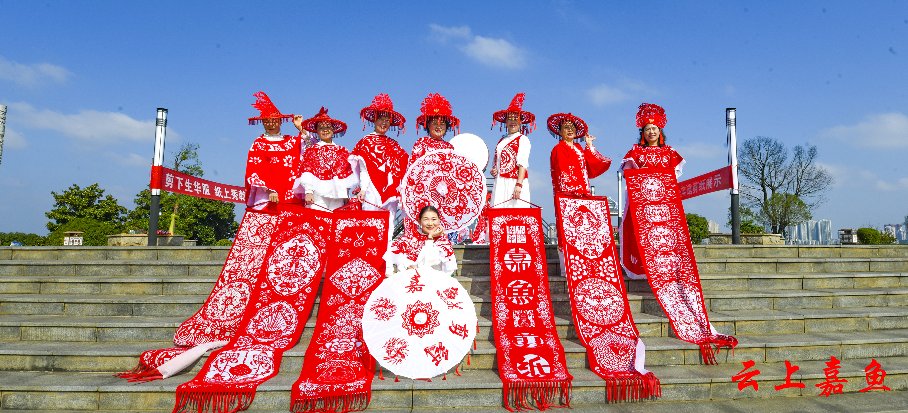 云上嘉鱼报道(全媒体记者雷平 通讯员庞建琴)10月22日上午,嘉鱼县八位非遗剪纸传承人身着剪纸华服,在雄风台以一场别开生面的“剪纸时装秀”,庆祝即将到来的重阳佳节。这场名为“剪下生华服,纸上秀乾坤——携手重阳,嘉鱼非遗剪纸展示”的活动,不仅让千年剪纸技艺“活”了起来,更以创新形式诠释了非遗传承的时代价值。