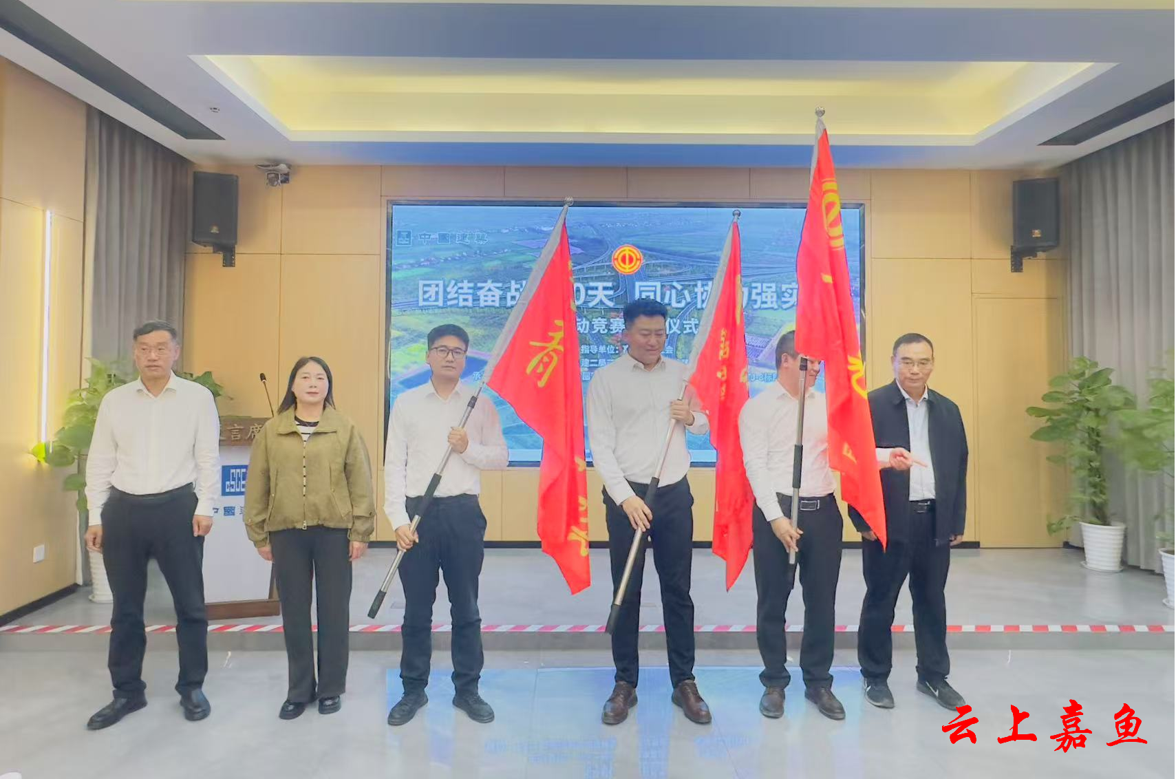 云上嘉鱼报道(通讯员刘菊 周雄)10月23日,“团结奋战120天 同心协力强实效”中建二局三公司劳动竞赛启动仪式在嘉鱼县武汉都市圈环线高速公路汉南长江大桥及接线工程HNTJ-8标段项目指挥部举行。