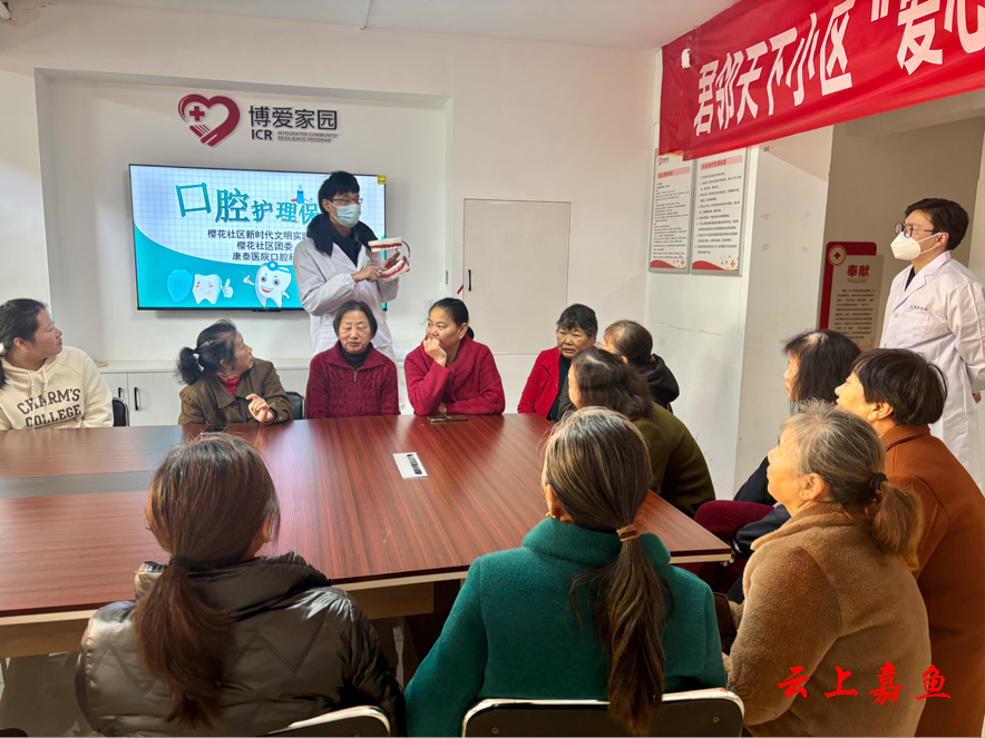 云上嘉鱼报道(全媒体记者祁声坤 通讯员朱倩)为进一步普及口腔健康知识,提高社区居民的口腔保健意识,10月23日,鱼岳镇樱花社区新时代文明实践站、社区团委、社区工会、社区侨联联合嘉鱼康泰医院口腔科在君邻天下小区开展了一场以“健康生活从‘齿’开始”为主题的口腔护理知识宣讲与义诊活动。