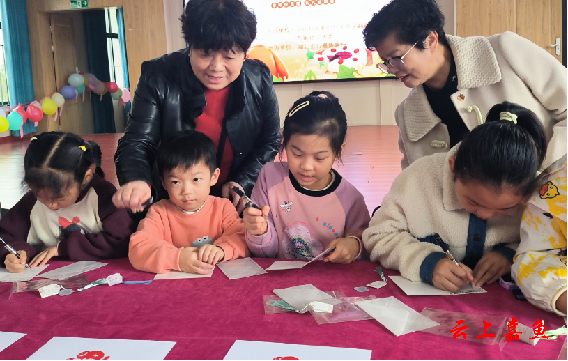 “剪纸要心手合一,孝道更要身体力行。”传承人手持剪刀,指尖轻转间,红纸便有了雏形。孩子们跟着模仿,不时有老人伸出布满皱纹的手,握住孩子的小手调整角度——不同年代的手掌交叠在红纸上,共同剪出了满含心意的作品:“孝”字缀满的福寿灯笼,藏着团圆的期盼;憨态可掬的孝心娃娃,透着天伦之乐;绽放的感恩之花,裹着纯真祝福。12岁的晓雅剪完 “妈妈的手”,急忙跑到冯五一老师身边:“冯奶奶,我想再加句‘妈妈辛苦了’,这样送给妈妈她肯定会笑的!”稚嫩的话语让现场暖意更浓。