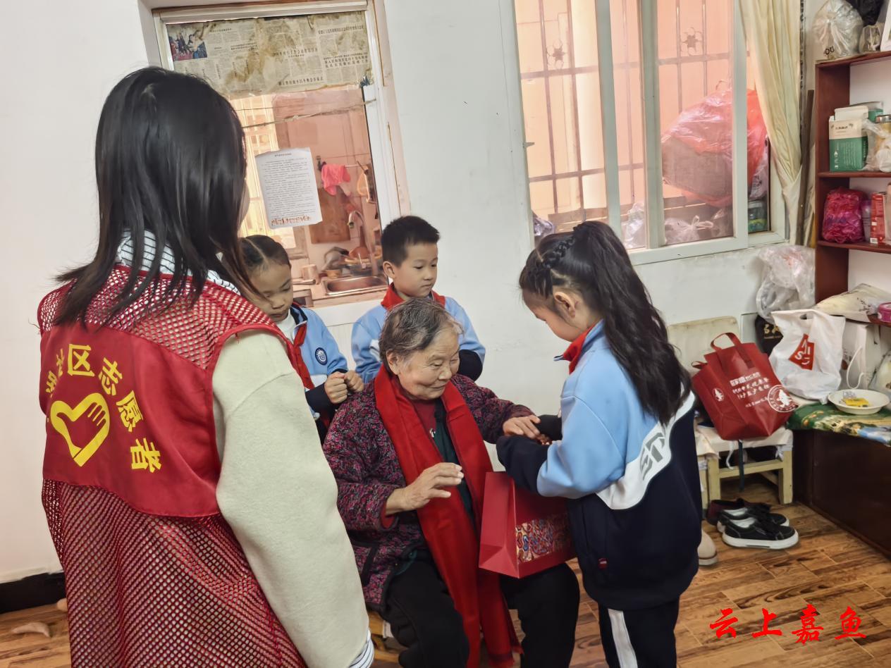 云上嘉鱼报道(通讯员周露黎)秋来又重阳,情暖桑榆晚。为弘扬中华民族尊老、敬老、爱老、助老的传统美德,10月29日,鱼岳镇人大第二代表小组、小湖社区新时代文明实践站联合小湖社区团支部、小湖社区妇联组织嘉鱼县第二小学的十余名小学生志愿者,开展了一场温馨感人的“重阳敬老情意浓,童心温暖夕阳红”慰问活动,为辖区的孤寡老人们送去了节日的祝福与纯真的欢笑。