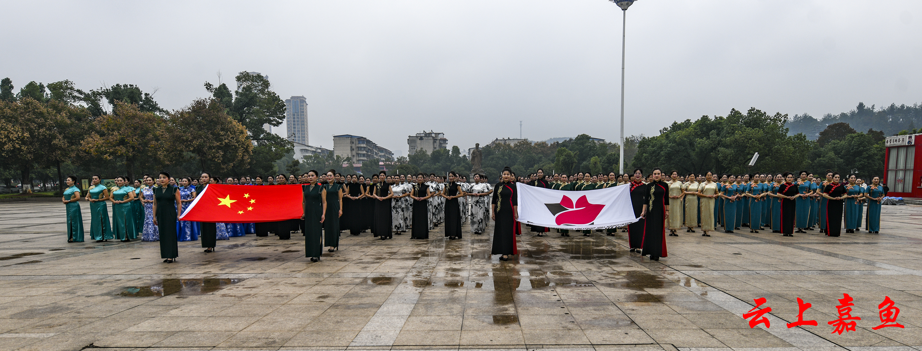 当天上午10时30分,来自各县市区的艺术团队以盛大的旗袍方阵走秀惊艳亮相,旗袍方阵展演尽显优雅风韵。嘉鱼县模特艺术协会的成员们身着典雅旗袍,步履从容,展现出江南水乡的温婉与新时代女性的自信风采,成为活动现场一道亮丽的风景线。