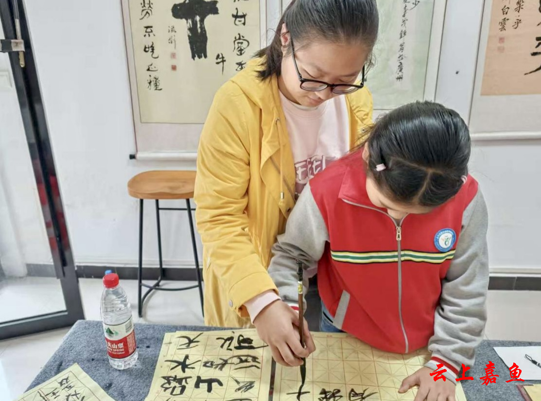 云上嘉鱼报道(全媒体记者祁声坤 通讯员郑成)11月8日,鱼岳镇北街社区团总支、新时代文明实践站,联合武昌首义学院嘉鱼教学改革基地青葵志愿服务小队、武昌首义学院常青书法社,在文庙山党群服务中心开展“墨香袅袅,童趣盎然”书法主题活动,让孩子们在笔墨间感受中华传统文化的独特魅力。