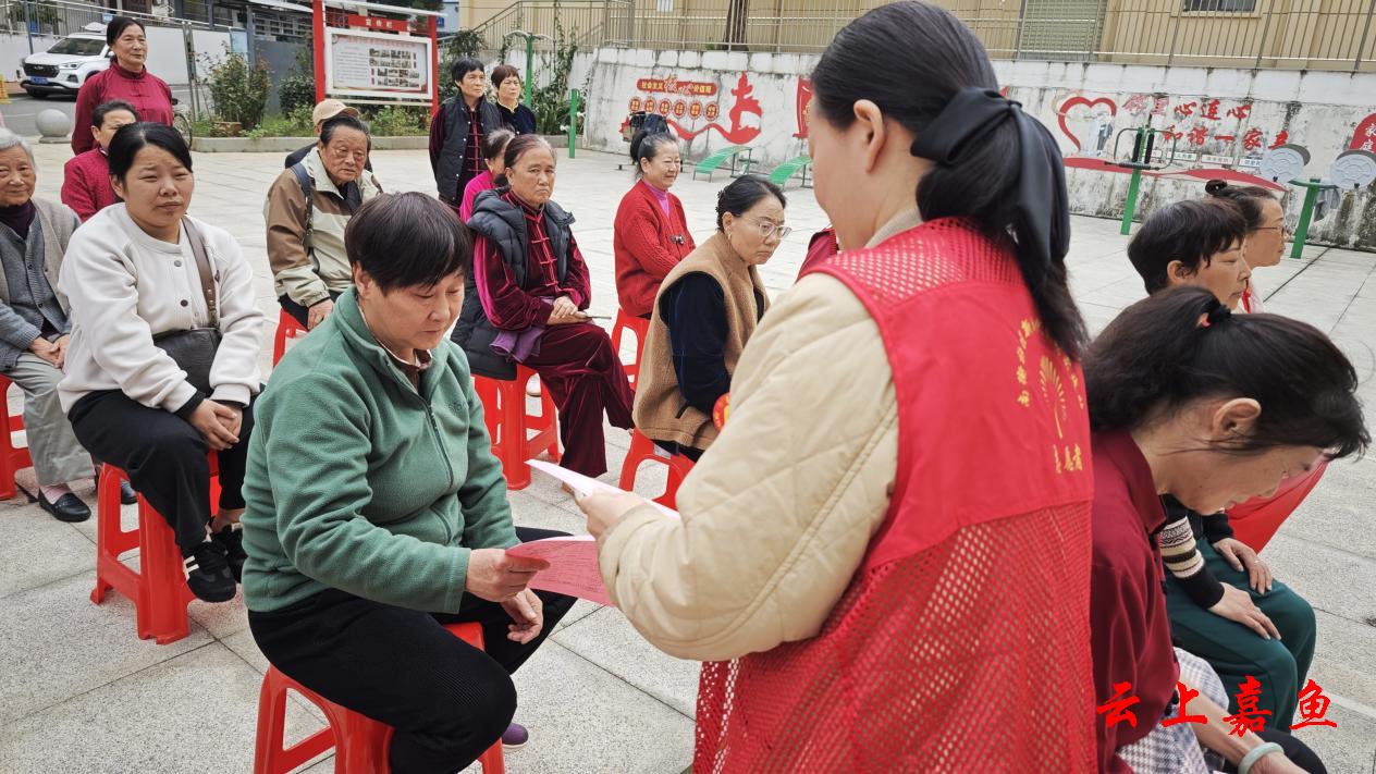 云上嘉鱼报道(通讯员王丽)“油锅起火该用锅盖盖灭还是浇水?”“正确答案是锅盖!”11月12日上午,鱼岳镇南街社区新时代文明实践站组织居民在老政府小区开展一场以“加强消防宣传提高消防意识”为主题的消防安全进小区宣传活动,40位居民在趣味互动中补上“安全必修课”。
