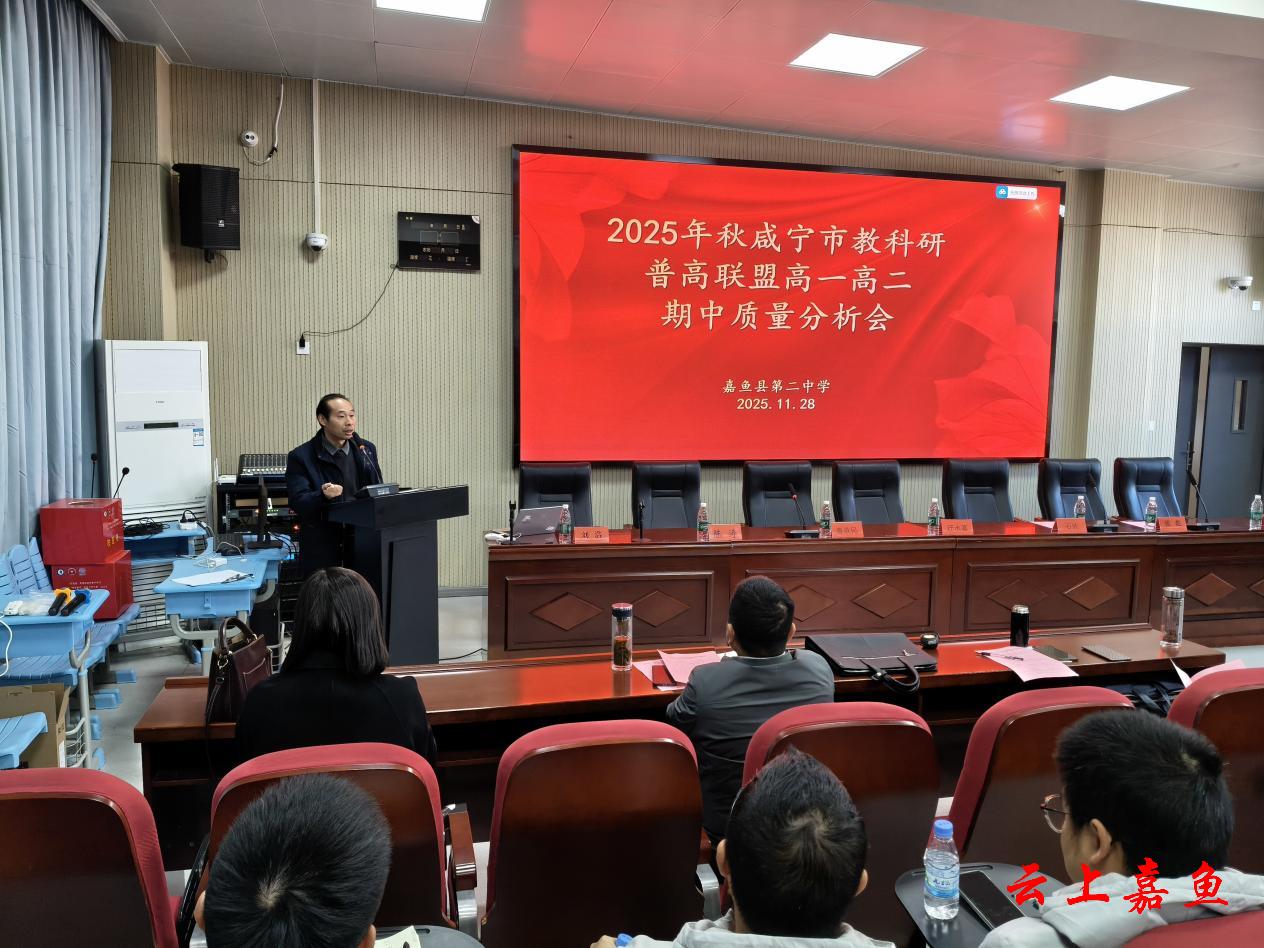 云上嘉鱼报道(全媒体记者胡知微)11月28日,2025年秋咸宁市教科研普高联盟高一高二期中质量分析会在嘉鱼二中举行。会议通过对期中考试数据的对比和深入分析,为后续教学提供精准指导,助力高一高二师生全力迎接未来的挑战,它既是一次“回头看”的总结会,也是一次“向前看”的启动会。