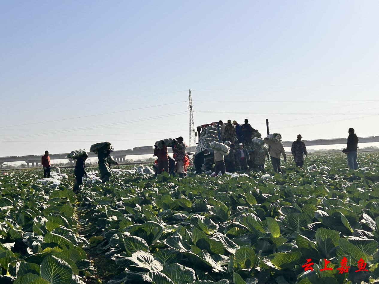 云上嘉鱼报道(通讯员李烁)近日,在肖家洲村的农田里,连片种植的甘蓝迎来了收获季。一颗颗硕大饱满、色泽翠绿的甘蓝整齐排列,菜农们穿梭田间,熟练地采收、装运,田间地头一派繁忙的丰收景象。这抹动人的“丰收绿”,不仅丰富了群众的“菜篮子”,更鼓起了农民的“钱袋子”。
