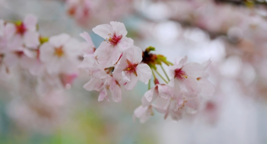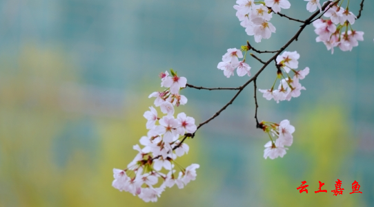 粉雾朦胧间,樱花的轮廓变得柔软。几簇花枝斜斜探出来,粉白的花瓣带着雨意,在虚焦的背景里晕成一片温柔的云。花蕊的红在朦胧中透出几分跳脱,像春的心跳,在这氤氲的水汽里,轻轻叩响嘉鱼的春日门扉。