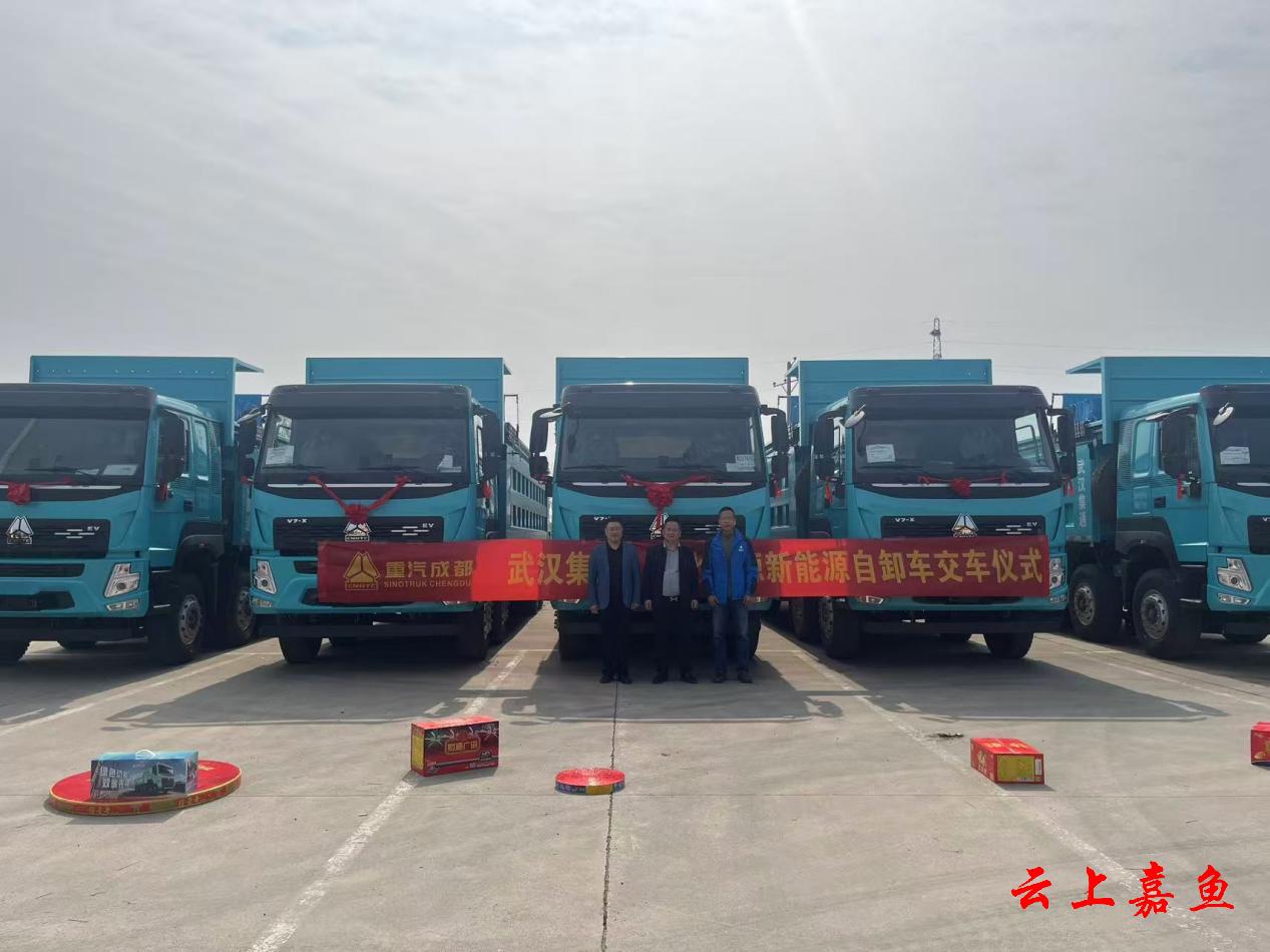 云上嘉鱼报道(全媒体记者耿海军)3月28日,嘉鱼谦源科技有限公司新购置的5台新能源自卸车交付仪式在潘家湾镇客运站举行。