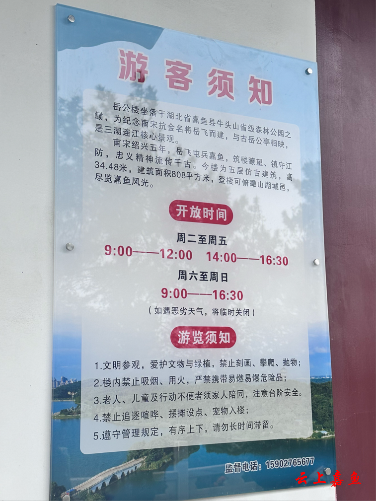 “我是老嘉鱼人,从小听岳飞的故事,今天岳公楼正式开门迎客,一大早我就来了。”退休老党员王叔激动地说,“人需要登高望远、开阔心胸。登上岳公楼顶,不仅能看到三湖连江乃至全城的风景,仿佛还能看清嘉鱼未来发展的方向与路径。”