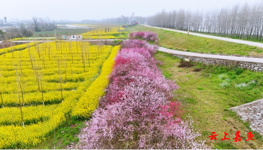 云上嘉鱼报道(全媒体记者卢建 贺子婷)春风送暖,万物复苏,嘉鱼县四邑公堤潘家湾段迎来了一年中最绚烂动人的时节。薄雾轻笼的江堤之上,数万朵桃花竞相绽放,粉白嫣红交织成绵延数里的花海,与金黄的油菜花田、翠绿的江滩草木相映成趣,勾勒出一幅生机盎然、如诗如画的春日生态画卷,成为嘉鱼春日里最亮眼的“生态名片”。