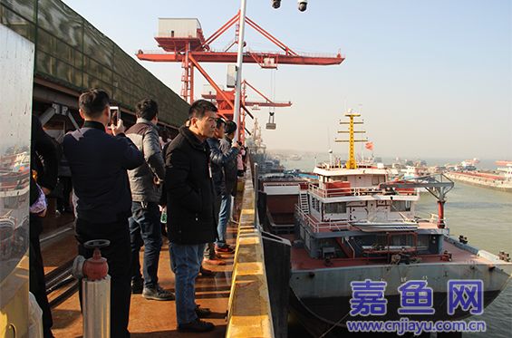 在武汉新港临江山港区建设现场,只见装卸、运输等工作有条不紊,一座现代化的大型码头已然成型。代表们对这一大型运输枢纽的建成使用赞叹不已,纷纷拿起手机拍照留念。据介绍,该码头由金盛兰冶金科技公司投资10亿元兴建,建设规模为新建1万吨级泊位4个,年设计吞吐量480万吨,码头岸线总长度515米。目前,码头1、2、3、4号泊位已投入使用,目前正在申报5号和6号泊位。