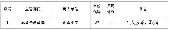 1、取消岗位1个(岗位代码:37),相应核减招聘人数1人,岗位取消情况如下: