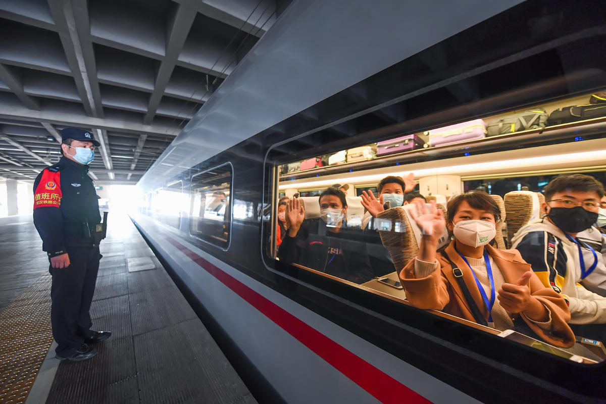 2020年3月19日,G4318次复工专列在汉口站短暂停留。(湖北日报全媒记者 陈勇 摄)