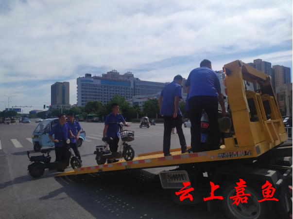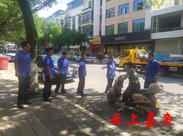云上嘉鱼报道(全媒体记者郭辉)6月27日,县城管执法大队、县交警大队组织执法人员,对城区主要道路的机动车和人行道非机动车停靠秩序进行专项整治。