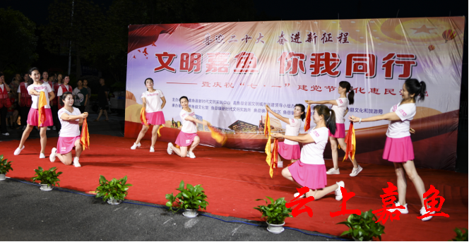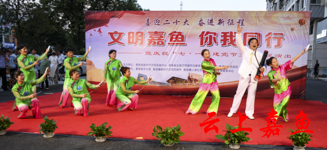 云上嘉鱼报道(全媒体记者雷平 通讯员王雯倩)6月28日,“喜迎二十大·奋进新征程”“文明嘉鱼·你我同行”暨庆祝“七一”建党节文化惠民演出走进鱼岳镇小湖社区,为社区群众送上一道丰盛的文化盛宴。