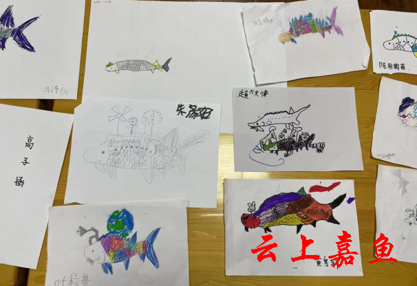 “现在中华鲟还在吗?还有多少?我们平常可以看见吗?”带着憧憬和想象,孩子们开始了以中华鲟为题材的绘画。