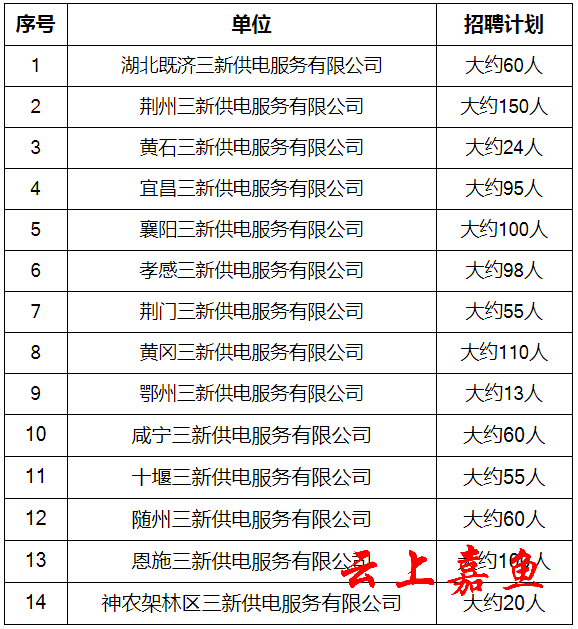 2022年湖北省各市(州、区)三新供电服务有限公司共计招聘约1000人。