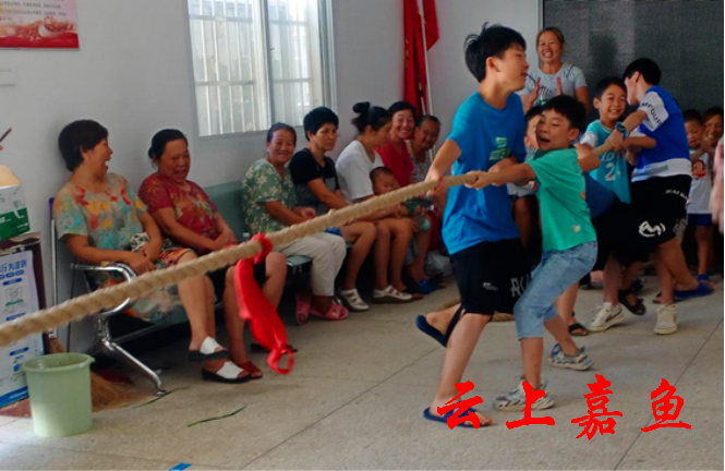 本次活动设置了河底摸石头、颠球走、插秧苗、拔河比赛等“趣味性”游戏。