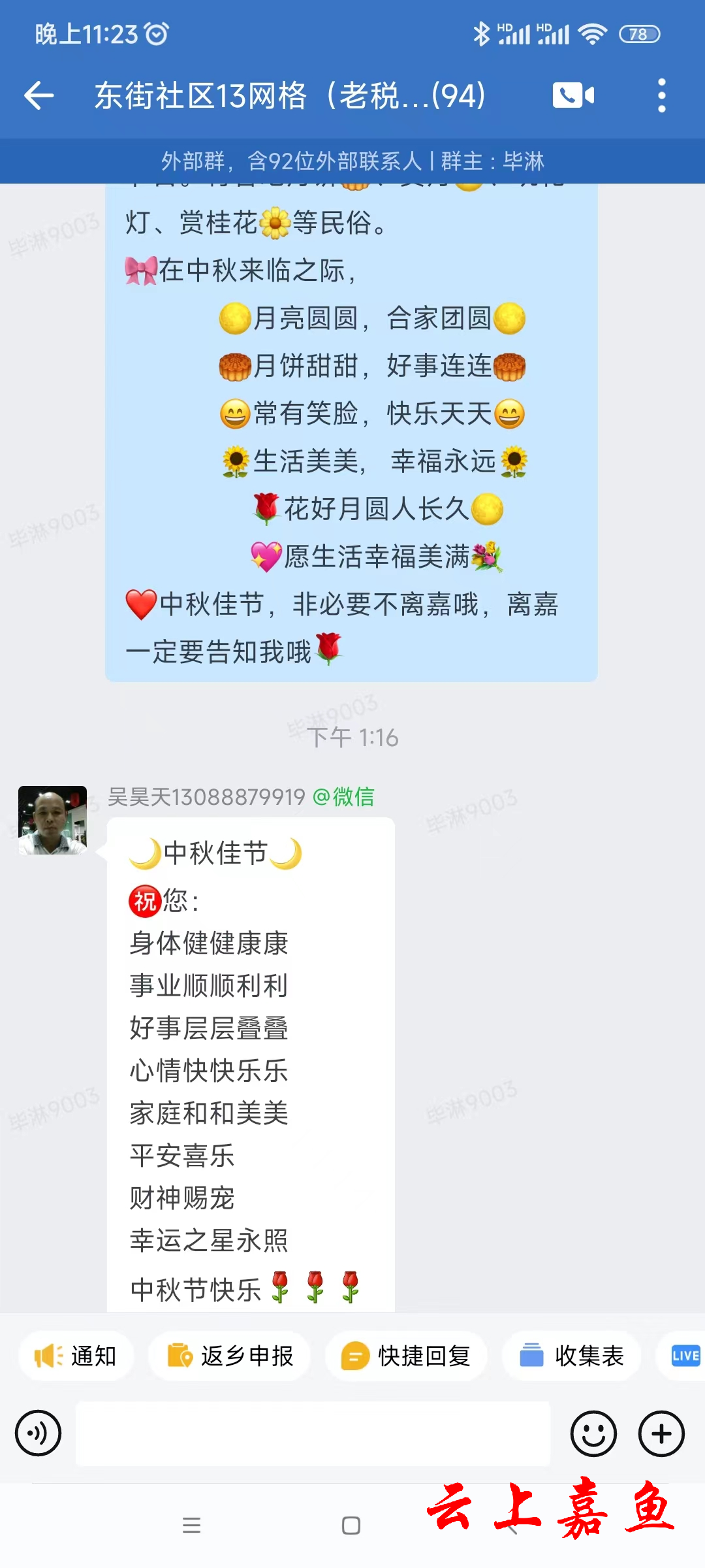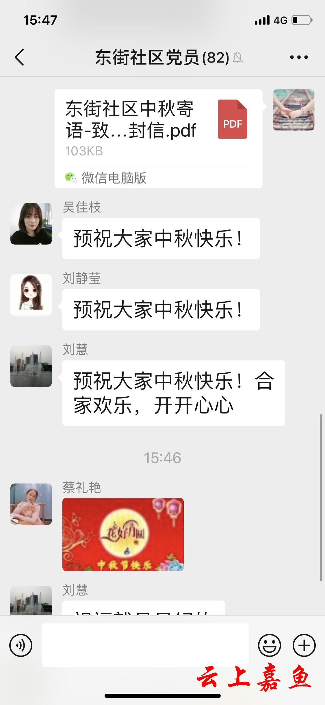 近日国内疫情多点散发,疫情防控形势严峻复杂。为进一步做好假期疫情防控工作,切实保障居民的生命安全和身体健康,嘉鱼县各社区积极响应县委文明办“倡导就地过节、减少外出聚集、做好常态防护”等中秋活动倡议,在节日来临之际通过微信、QQ群转发等方式宣传文明健康线上线下过节理念。