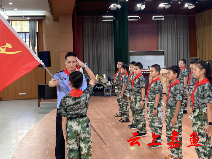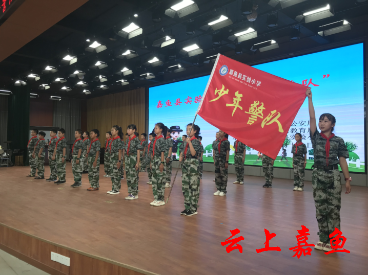 云上嘉鱼报道(全媒体记者胡知微 通讯员吕铁桶)为了进一步创建文明校园,9月16日,由县公安局、县教育局主办,县实验小学承办的嘉鱼县实验小学“少年警队”授旗仪式举行,该校五年级学生200余人见证了庄严的授旗仪式。