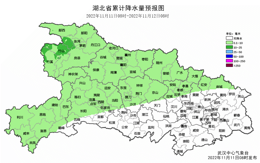 武汉中心气象台首席预报员介绍,预计在冷空气影响下,11日晚下半夜到13日白天,我省大部地区将刮起4-5级,阵风6-7级的偏北大风。对于持续晴朗干燥的湖北来说,这股冷空气带来的是及时雨。预计11日至13日,西部小到中雨、局部大雨,东部小雨,局部有雷电;14日至16日南部小雨,北部多云或阴天。过程累计雨量西部10至30毫米,东部5至15毫米。在大风和雨水的强势打压下,我省气温将出现大幅跳水,平均气温下降8℃至12℃,最高气温下降14℃至16℃,15日早晨大部地区最低气温仅5℃至10℃。和前期持续偏高的气温相比,如同初夏穿越到深秋,冷热反差非常明显,公众请注意及时调整着装,谨防感冒。