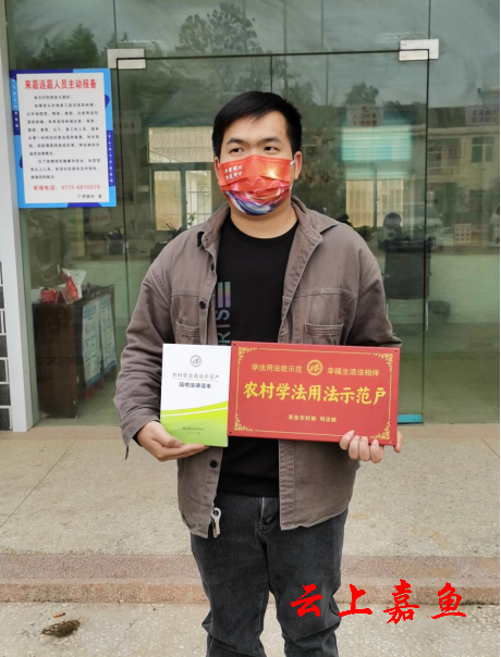 云上嘉鱼报道(通讯员鲁炼)11月23日,高铁岭镇广济堂村村民邹明收到了一份特别的礼物,一本简明法律读本和一个由农业农村部和司法部联合下发的农村学法用法示范户标牌。