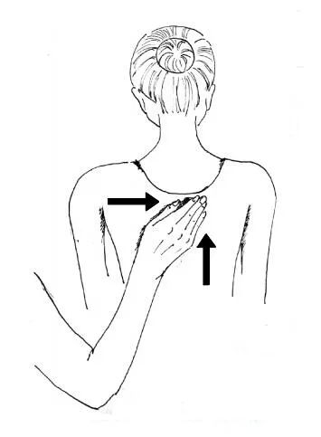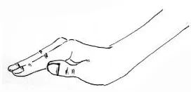 通常让患者坐着拍背,叩击时一般用右手,拇指紧贴食指的第一个指关节,四指并拢,似手中握有鸡蛋样(如下图)。判断手势是否正确的方法是:进行叩击时,听到空空的叩击声,而不是啪啪的拍打声。
