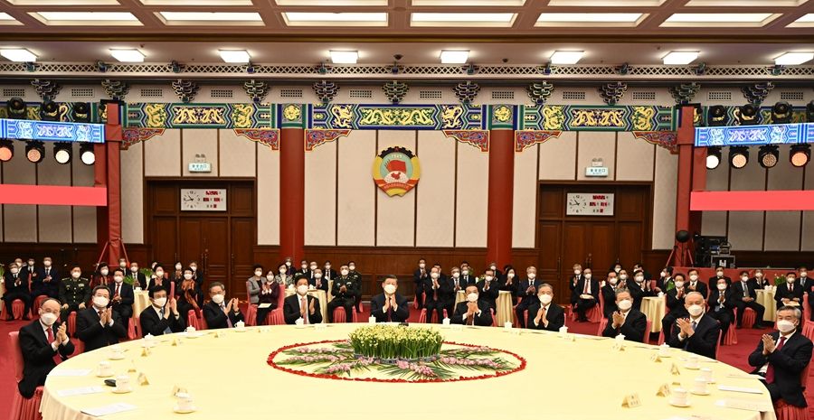 12月30日,全国政协在北京举行新年茶话会。党和国家领导人习近平、李克强、栗战书、汪洋、李强、赵乐际、王沪宁、蔡奇、丁薛祥、李希、王岐山出席茶话会并观看演出。 新华社记者 李学仁 摄