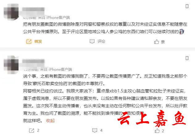 2日下午,黄可告诉上游新闻记者,无锡当地派出所的民警还是找上了门,“下午就去做了笔录,手机朋友圈的内容全部拍照留档了,民警表示,重点是XBB1.5主攻心脑血管和拉肚子未经证实,属于虚假消息,所以不要在朋友圈发布。以后如果有各种建议请私聊亲友,不要在朋友圈发。这次我不是主动传播者,也从来没有主动在任何群和公共平台发布,所以批评教育为主。”