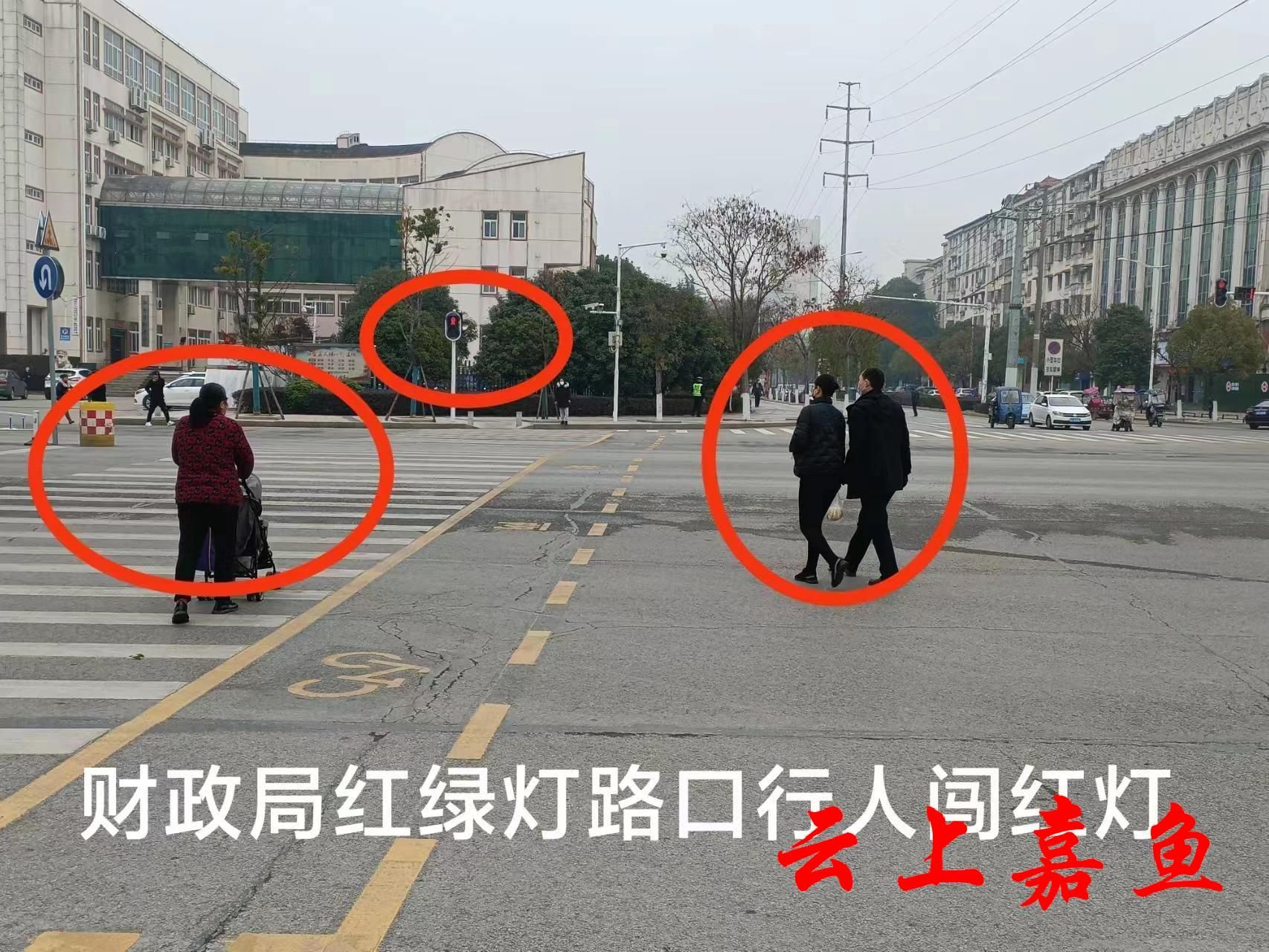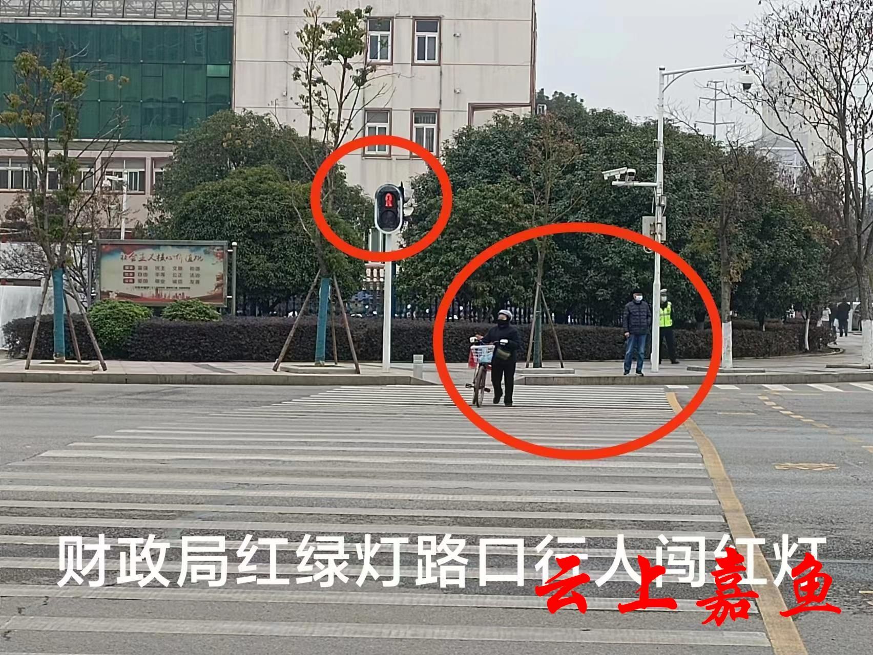 1月5日,财政局红绿灯路口,行人、非机动车闯红灯曝光如下。