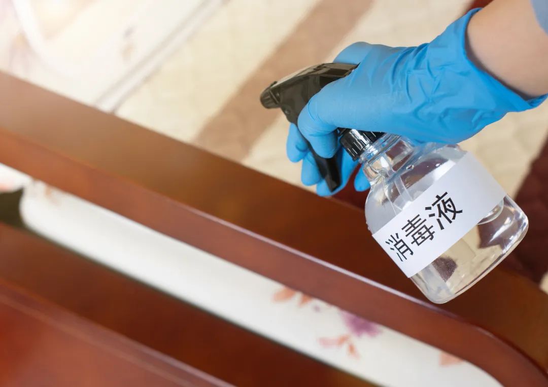物体表面。桌椅、家具、门把手、水龙头等物体表面,有污染物时应先清理污染物,再用500mg/L的含氯消毒液擦拭消毒,也可选择刺激性小的季铵盐消毒液,作用30分钟后清水擦拭干净。手机、遥控器、鼠标等小件物品可用酒精湿巾擦拭消毒。