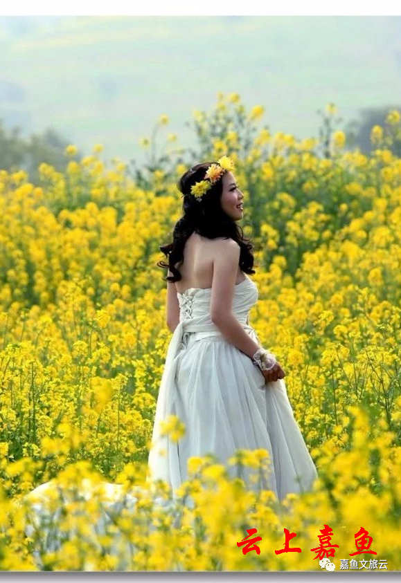 拍摄小技巧:站在油菜花田中拍照,可以让自己侧身站立,面朝阳光,闭上眼睛,细细感受阳光打在脸上的美好,感受花的清香,这样的照片拍出来,你就是最美的那一个。