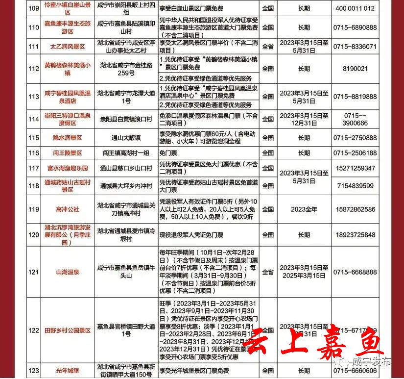 3月14日,我省启动“游荆楚、享尊崇、葆本色”2023退役军人“春游湖北”活动。我市15家景区向全省、全国退役军人发出春游邀请,广大退役军人可凭“优待证”可免票或半票游咸宁。
