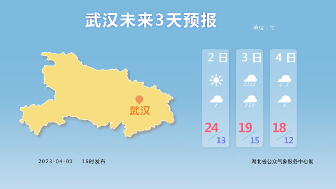 最高气温:鄂西北16~19℃;其他地区20~24℃