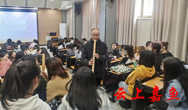 云上嘉鱼报道(全媒体记者雷平)3月31日,在咸宁职业技术学院多功能会议厅举行的非遗大师工作室签约仪式和非遗大师进校园系列活动中,咸宁市市级非物质文化遗产(胡金才制箫技艺)代表性传承人胡金才应聘成为咸宁职业技术学院南箫制作非遗传承导师,并进行现场教学。