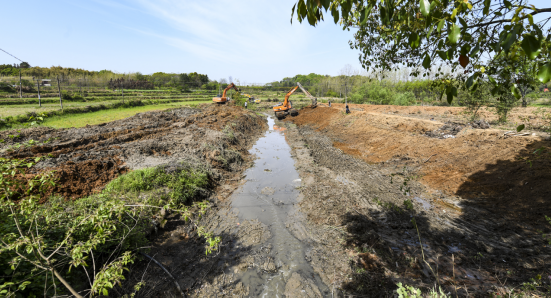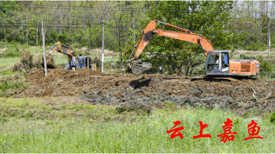云上嘉鱼报道(全媒体记者雷平 通讯员卜美娟)4月9日,高铁岭镇九龙村李珠港机声隆隆,3台大型挖掘机正在进行清淤作业,工程技术人员现场指导,确保施工质量。