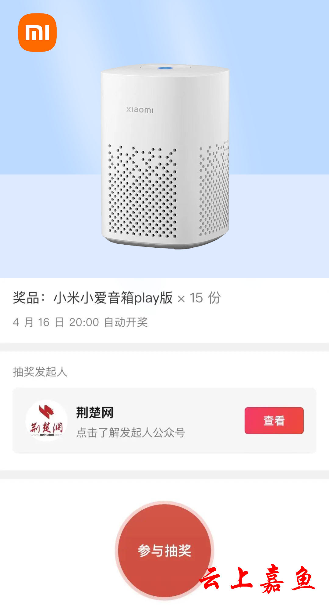 1、网友参与活动,完成答题后即可参与抽奖,中奖结果将在活动结束后公布。中奖者需填写姓名、电话、地址等信息,以便收取奖品。2、获奖名额共15名,在完成答题的网友中随机生成,奖品为小米音箱一台。